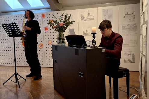Filip Terpinc na saksofonu in Lev Soklič na klavirju